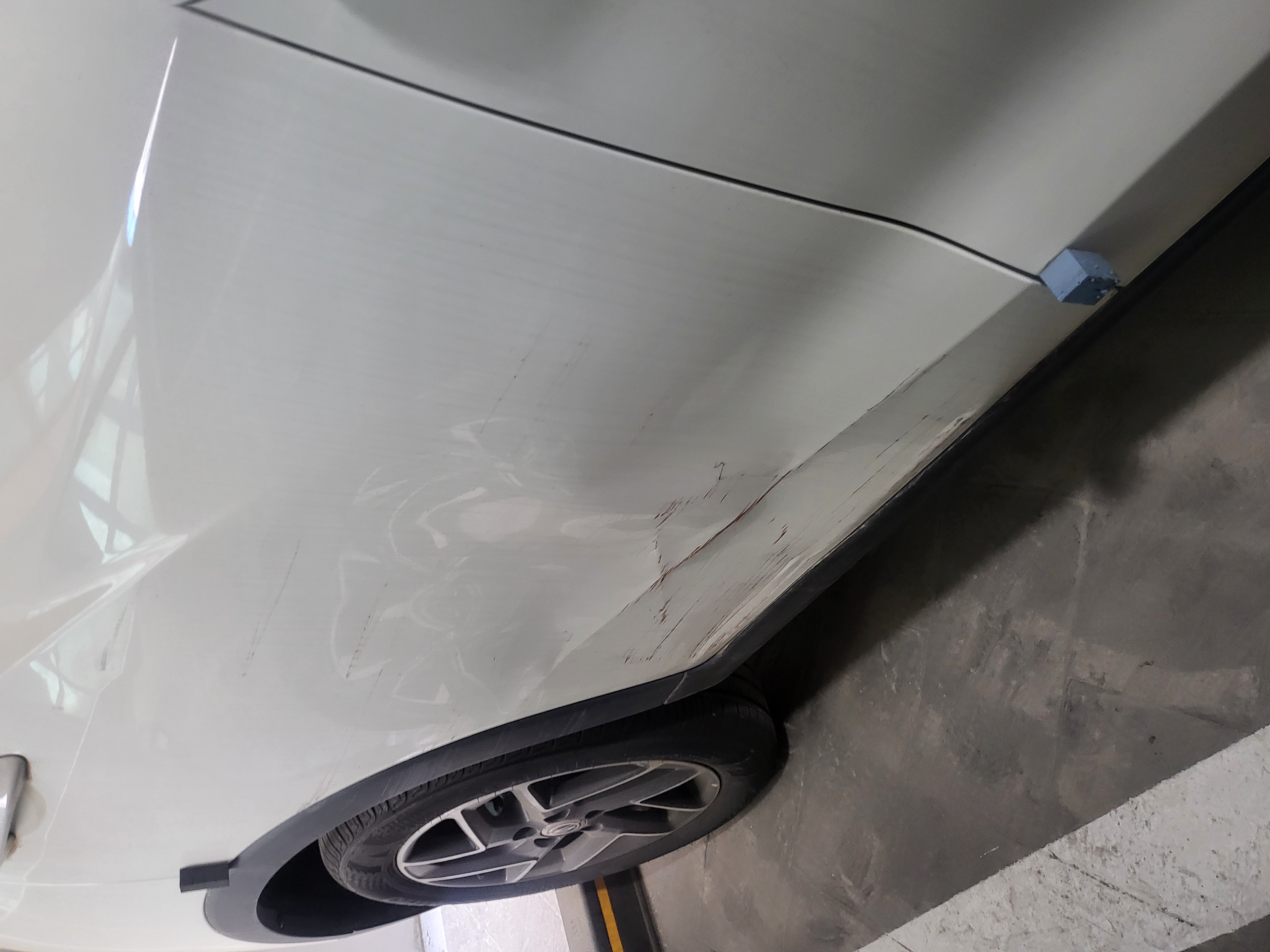 오른쪽 뒷자리 문쪽 찌그러짐이 있습니다.